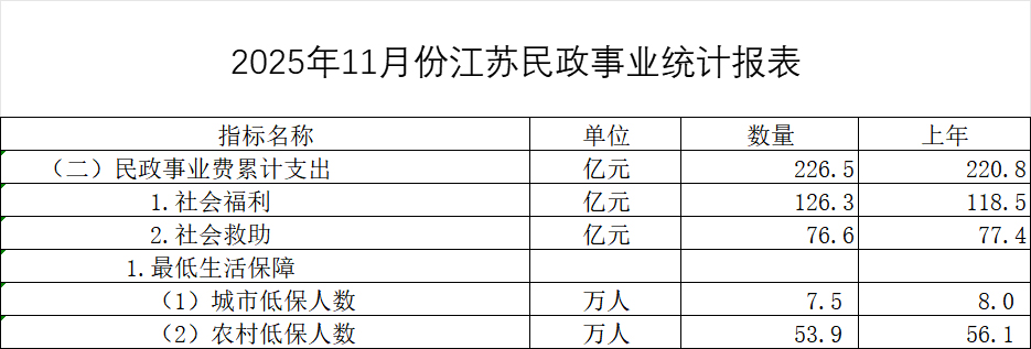 2025年11月份江苏民政统计报表